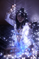 最後は久々にLEDイルミネーションを使ったアート撮影。こちらも白のビキニの上にシャツを羽織ってちょっぴりセクシーな表情を見せて
