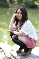 新緑に囲まれて気分良く撮影することができました。麻衣ちゃんは春らしい可愛い衣装とバストラインがはっきり出るセクシーなタンクトップ