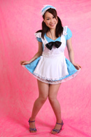 で笑顔を振りまいてくれました。昼食後スタジオで第2部がスタート。最初は胸の大きく空いたブルーのウエイトレス姿で登場。風船を使って