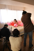 で楽しい作品を撮りました。続いてベッドに移動しピンクのビキニでグラビア撮影。こちらはハートの風船を使ってキュートな作品を撮ることが