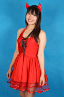ピンクのタンクトップでスタート。またまた魅力的な胸の谷間を堪能しつつ撮影を楽しみました。最後はハロウィンも近いということでデビル