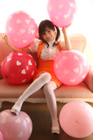 インのビキニで登場。ベッドの上で自然光を浴びながらグリーンとブルーの風船で海のイメージで撮影しました。第3部は色鮮やかなブルー