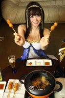 のセクシー衣装で登場。妖艶な表情とポージングに魅了されました。オフ会は前回に続き串揚げが登場。K子ちゃんも大喜びで自ら衣を