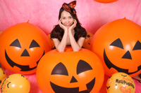 定番の可愛い魔女のコスプレで登場。ピンクバックにハロウィン仕様の風船を沢山使って華やかで楽しい締めくくりとなりました。オフ会は