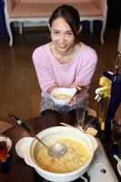 締めはうどんと雑炊 デザートは柿だよ ラグビーワールドカップを観戦