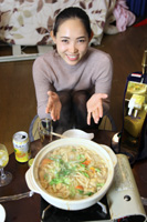 背中とくびれラインの艶めかしい姿に夢中でシャッターを切りました。オフ会は久々にごまみそ鍋が登場。楽しかった1日を振り返りながら飲ん