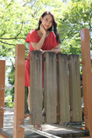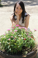 第1部は公園での私服ポートレート撮影。最初は夏らしい涼しげなミニワンピで登場。細くて長い美脚が眩しかったです。