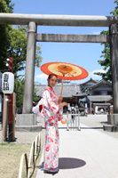 街並みや本堂、五重塔など背景に撮影を楽しみました。萌ちゃんも暑い中、浴衣姿で可憐な笑顔を見せてくれました。その後、